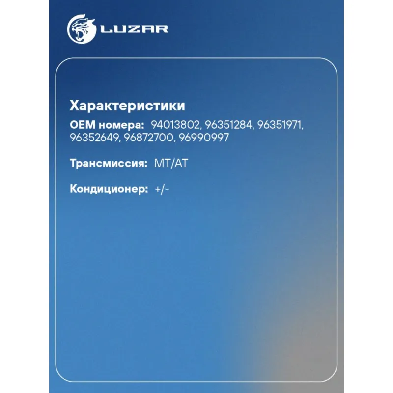 | Количество на автомобиль | 1 |