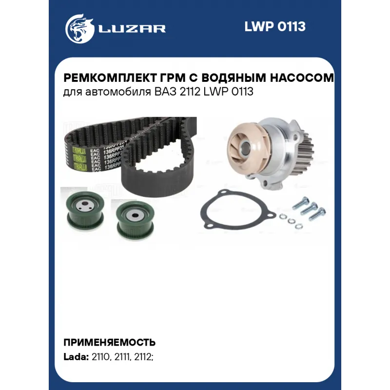 Ремкомплект ГРМ с водяным насосом для автомобиля ВАЗ 2112 Характеристики: Артикул: LWP 0113 OEM номера: 2112-1307010, 2112-1006040, 2112-1006135, 2112-1006120, 21120-1006135-00, 21120-1006120-00, 21120-1006040-00, 21120-1307010-00, 21120130701082 Трансмиссия: MT/AT Кондиционер: +/- Материал крыльчатки: Керамический пластик PPS Сопутствующий товар: Термостаты: LT 0110 Сопутствующие товары:: GB 810, GD 710, CM 135, CM 120, CMS 120, CMS 135, CM 712 Комплектация:: с водяным насосом Гарантийный срок: 2 года/60 000 км. Длина ремня ГРМ, мм.: 1295 Ширина ремня ГРМ, мм.: 25,4 Количество зубьев ремня ГРМ: 136 Материал ремня ГРМ: EPDM Подходит для авто: ВАЗ 2110, 2111, 2112 Для проверки применяемости отправьте VIN автомобиля через вкладку "Есть вопросы о товаре?" Комплектация: Водяной насос (помпа) с прокладкой и болтами - 1 шт Ремень ГРМ - 1 шт Ролик ГРМ - 2 шт Гарантия: от 1 года.