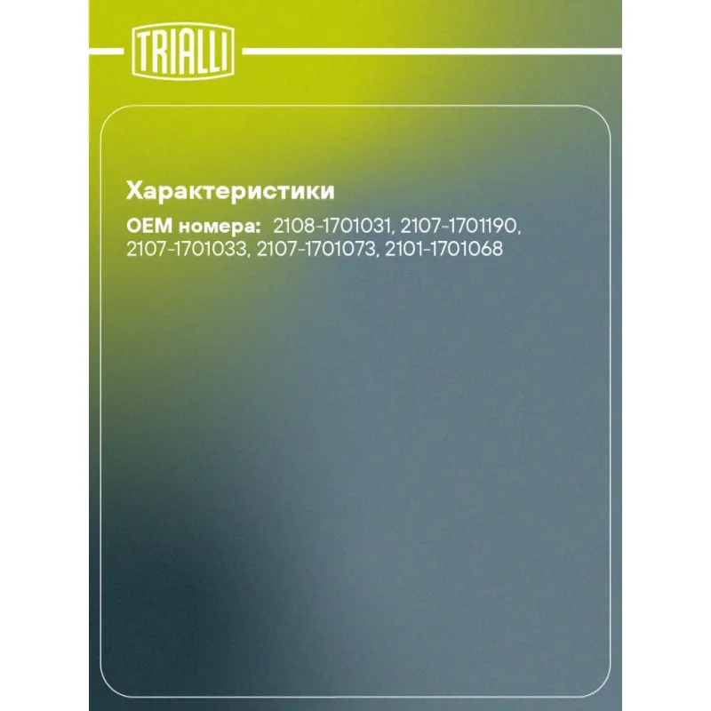Ремкомплект КПП (5 ступенчатая) для автомобиля Лада 2107 (только подшипники) Характеристики: Артикул: CT 725 OEM номера: 2108-1701031, 2107-1701190, 2107-1701033, 2107-1701073, 2101-1701068 Товарная линейка: BLACK Количество на автомобиль: 1 Сопутствующие товары:: CTS 726 Особенности конструкции:: Подшипники КПП для 5х ступ. Гарантийный срок: 1 год/30 000 км Наружный диаметр (D), мм: 75 Подходит для авто: ВАЗ 2101, 2102, 2103, 2105, 2106, 2107, 2107, 2104 Для проверки применяемости отправьте VIN автомобиля через вкладку "Есть вопросы о товаре?" Комплектация: Подшипники - 6 шт Гарантия: от 1 года.