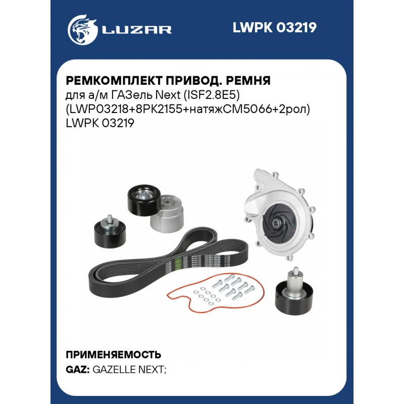 Ремкомплект привод. ремня для а/м ГАЗель Next (ISF2.8E5) (LWP03218+8PK2155+натяжCM5066+2рол) Характеристики: Артикул: LWPK 03219 OEM номера: 4444-525459900, 5254597 , 5254599, 5269784, 5269897, 5333148, 5398362F, 5254598, 5309066, 4444-530906600, 5271282 Трансмиссия: Механическая коробка передач Кондиционер: +/- Материал крыльча... Читать полностью →
