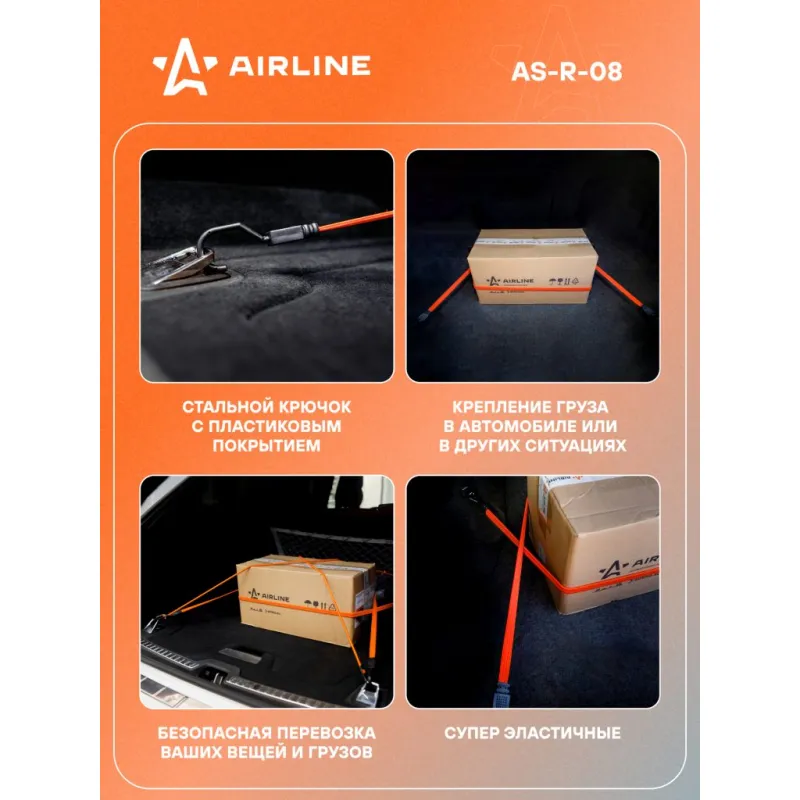 Резинки-стяжки (эластичные) набор 2 шт. 80 см, 20 мм (пластиковые крючки) Описание: Эластичные ремни в наборе из 2 шт штук, длиной , представляют собой надежное решение для крепления груза в автомобиле или в других ситуациях. Фиксация ремней производится с использованием пластиковых крючков, они делают данное изделие более безопасным и удобным в использовании, так как они мягкие и менее склонны к повреждениям. Стальные крючки с пластиковым покрытием делают данное изделие более дорогостоящим, но при этом обеспечивают высокий уровень безопасности при использовании. Это особенно важно в ситуациях, когда крючок подвергается натяжению, чтобы предотвратить его соскальзывание с крепежа. Набор из двух эластичных ремней с такими крючками предоставляет надежное и безопасное средство для крепления и удержания груза в месте вашего выбора. Эти ремни позволяют вам организовать и безопасно перевозить ваши вещи и грузы в автомобиле или в других ситуациях. Особенности: -Долгий срок службы; -Супер эластичный; -Универсальное надежное крепление; -Качественный пластик; Важно отметить, что ремни НЕ ПРЕДНАЗНАЧЕНЫ ДЛЯ ПОДЪЕМА грузов. Товар официального производителя AIRLINE. Набор идеально подойдет в качестве подарка автомобилисту, мужчине, мужу, жене, парню, владельцу авто. Характеристики: Артикул: AS-R-08 Длина, см: 80 Диаметр стяжки, мм: 20 Кол-во резинок-стяжек, шт: 2 Крепление: Стальной крючок с пластиковым покрытием Комплектация: Ремни эластичные набор со стальным крючком с пластиковым покрытием - 2 шт Пакет с навершием - 1 шт Гарантия: от 1 года.