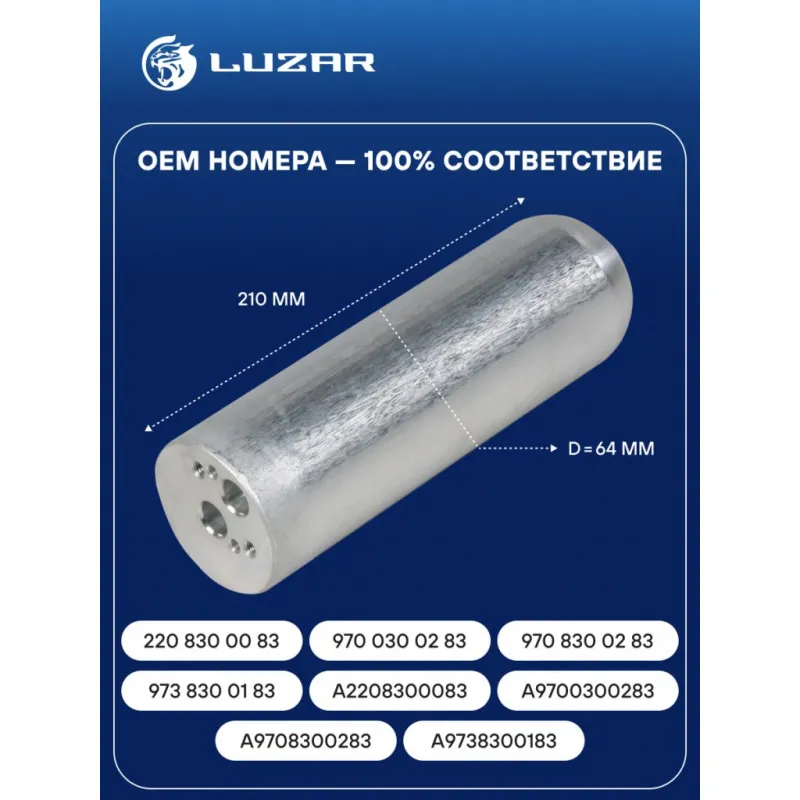 Ресивер-осушитель конденсера для автомобилей Sprinter (95-) Характеристики: Артикул: LCR 1501 OEM номера: 220 830 00 83, 970 030 02 83, 970 830 02 83, 973 830 01 83, A2208300083, A9700300283, A9708300283, A9738300183 Материал: Алюминий Диаметр: 64 Высота: 210 Хладагент: R-134a Сопутствующий товар: Радиаторы кондиционера (конденсеры): LRAC 1509; LRAC 1530 Сопутствующий товар: Компрессоры кондиционера: LCAC 15164; LCAC 1540; LCAC 1552 Сопутствующий товар: Клапаны расширительные кондиционера (ТРВ): LTRV 1550 Совместимость с радиаторами кондиционера LUZAR: Несовместим Подходит для авто: Mercedes-Benz Sprinter (00-), Vario (96-), Sprinter Classic (13-), Vario (96-), Atego (04-), Atego (04-) Для проверки применяемости отправьте VIN автомобиля через вкладку "Есть вопросы о товаре?" Комплектация: Ресивер - осушитель Гарантия: от 1 года.