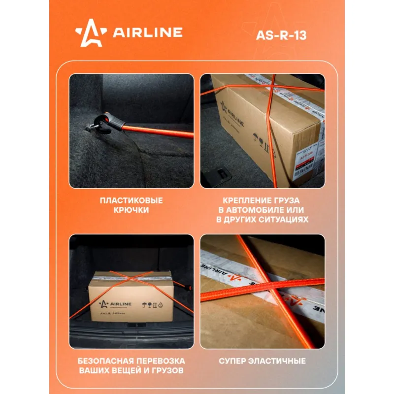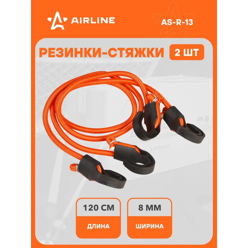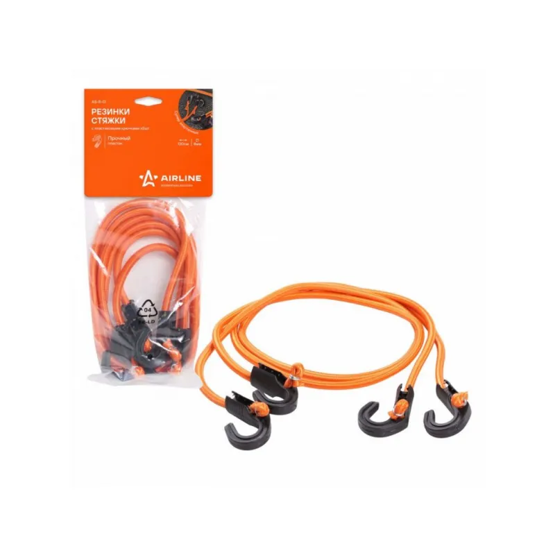 Резинки-стяжки набор 2 шт. 120 см, D-8 мм (пластиковые крючки) Описание: Эластичные резинки в наборе из 2 шт штук, длиной , представляют собой удобное и надежное средство для крепления груза в автомобиле или в любом другом месте, где требуется обеспечить безопасность и устойчивость перевозимых предметов. Фиксация этих резинок производится с помощью пластиковых крючков. Пластиковые крючки делают данное изделие более безопасным и удобным в использовании, так как они мягкие и менее склонны к повреждениям, чем металлические крючки. Это особенно важно, когда резинка подвергается натяжению, чтобы предотвратить ее соскальзывание с крепежа. Набор эластичных резинок обеспечивает надежное и безопасное крепление груза, делая вашу перевозку более удобной и безопасной. Пластиковые крючки придают этим резинкам дополнительный уровень безопасности при работе с ними. Особенности: -Долгий срок службы; -Супер эластичный; -Универсальное надежное крепление; -Качественный пластик; Важно отметить, что резинки НЕ ПРЕДНАЗНАЧЕН ДЛЯ ПОДЪЕМА грузов. Товар официального производителя AIRLINE. Набор идеально подойдет в качестве подарка автомобилисту, мужчине, мужу, жене, парню, владельцу авто. Характеристики: Артикул: AS-R-13 Длина, см: 120 Диаметр стяжки, мм: 8 Кол-во резинок-стяжек, шт: 2 Крепление: Пластиковый крючок Комплектация: Ремни эластичные набор с пластиковым крючком - 2 шт Пакет с навершием - 1 шт Гарантия: от 1 года.