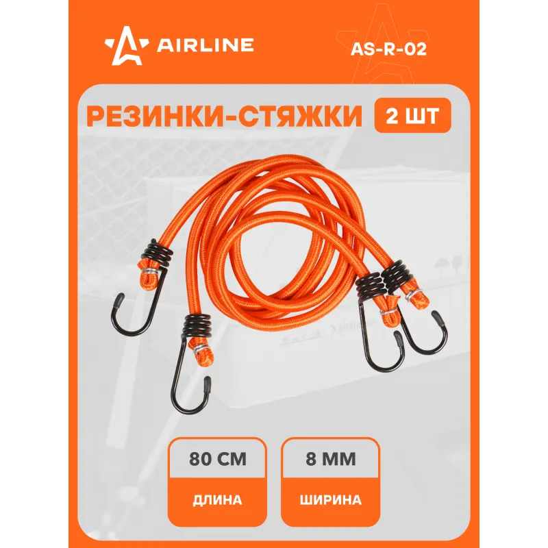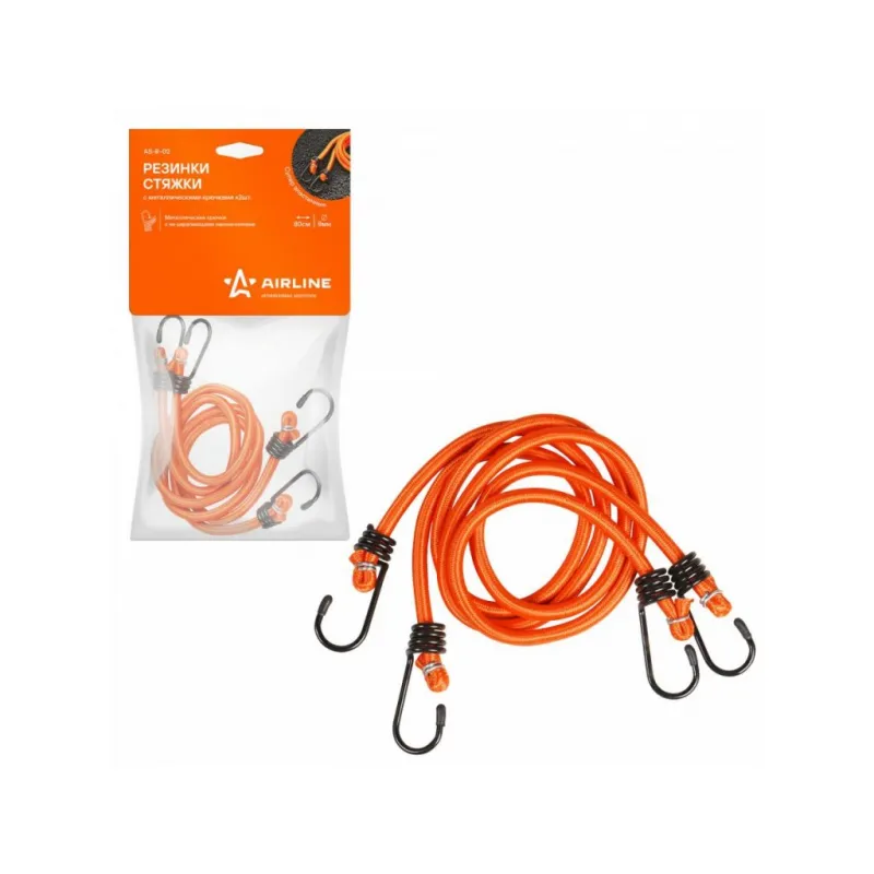 Резинки-стяжки набор 2 шт. 80 см, D-8 мм (металлические крючки) Описание: Эластичные резинки в наборе из 2 шт, длиной , представляют собой удобное и надежное средство для крепления груза в автомобиле или в любом другом месте, где необходимо обеспечить безопасность и устойчивость перевозимых предметов. Фиксация этих резинок осуществляется с помощью металлических крючков, которые обладают пластиковыми наконечниками для более надежной фиксации и защиты от повреждений. Это позволяет надежно закрепить груз, предотвращая его смещение или падение во время движения. Набор эластичных резинок становится незаменимым аксессуаром при перевозке различных предметов, обеспечивая их безопасность и надежность крепления. Эти резинки облегчают организацию и обеспечивают безопасность перевозки груза, делая вашу поездку более комфортной и безопасной. Особенности: -Долгий срок службы; -Супер эластичный; -Универсальное надежное крепление; -Качественный пластик; Важно отметить, что ремни НЕ ПРЕДНАЗНАЧЕНЫ ДЛЯ ПОДЪЕМА грузов. Товар официального производителя AIRLINE. Набор идеально подойдет в качестве подарка автомобилисту, мужчине, мужу, жене, парню, владельцу авто. Характеристики: Артикул: AS-R-02 Кол-во резинок-стяжек, шт: 2 Длина, см: 80 Диаметр стяжки, мм: 8 Крепление: Металлические крючки Комплектация: Резинки-стяжки набор с металлическими крючками - 2 шт Пакет с навершием - 1 шт Гарантия: от 1 года.