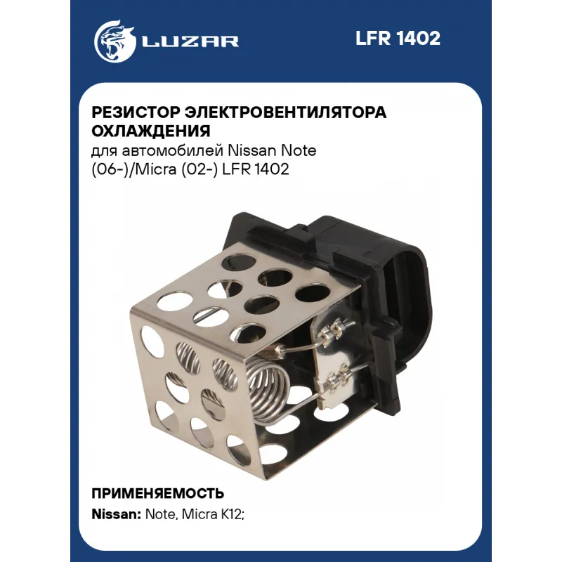 Резистор электровентилятора охлаждения для автомобилей Nissan Note (06-)/Micra (02-) Характеристики: Артикул: LFR 1402 OEM номера: 21481AX800 Количество на автомобиль: 1 Примечание: У резистора нет отдельного ОЕМ номера, подбор осуществляется по ОЕМ номеру э/вент. охлаждения в сборе Совместимость: устанавливается на э/вент. охл. LFK 1411 Сопутствующий товар: Электровентиляторы охлаждения: LFK 1411 Подходит для авто: Nissan Note (06-), Micra K12 (02-) Для проверки применяемости отправьте VIN автомобиля через вкладку "Есть вопросы о товаре?" Комплектация: Резистор электровентилятора - 1 шт Гарантия: от 1 года.