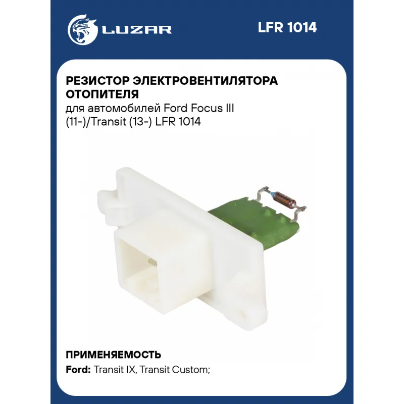 Резистор электровентилятора отопителя для автомобилей Ford Focus III (11-)/Transit (13-) Характеристики: Артикул: LFR 1014 OEM номера: 1 804 471, 1 695 812 Количество на автомобиль: 1 Подходит для авто: Ford Transit IX (13-), Transit Custom (12-), Kuga (13-), Focus III (11-) Для проверки применяемости отправьте VIN автомобиля через вкладку "Есть вопросы о товаре?" Комплектация: Резистор электровентилятора - 1 шт Гарантия: от 1 года.