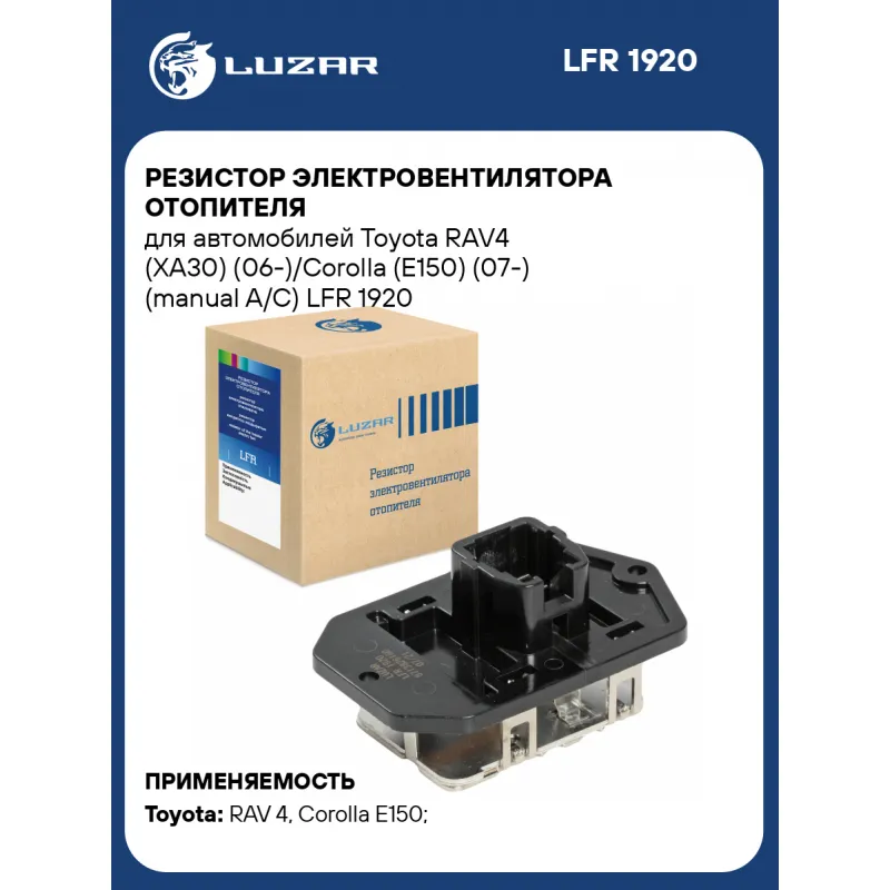 Резистор электровентилятора отопителя для автомобилей Toyota RAV4 (XA30) (06-)/Corolla (E150) (07-) (manual A/C) Характеристики: Артикул: LFR 1920 OEM номера: 8713826160, 8713802100 Количество на автомобиль: 1 Сопутствующий товар: Электровентиляторы отопителя: LFh 1920; LFh 19D4 Подходит для авто: Toyota RAV 4 (06-), Corolla E150 (06-), Corolla E180 (13-), RAV 4 (13-), RAV 4 (06-), Corolla E150 (06-), Avensis (09-), Auris (06-) Для проверки применяемости отправьте VIN автомобиля через вкладку "Есть вопросы о товаре?" Комплектация: Резистор электровентилятора - 1 шт Гарантия: от 1 года.