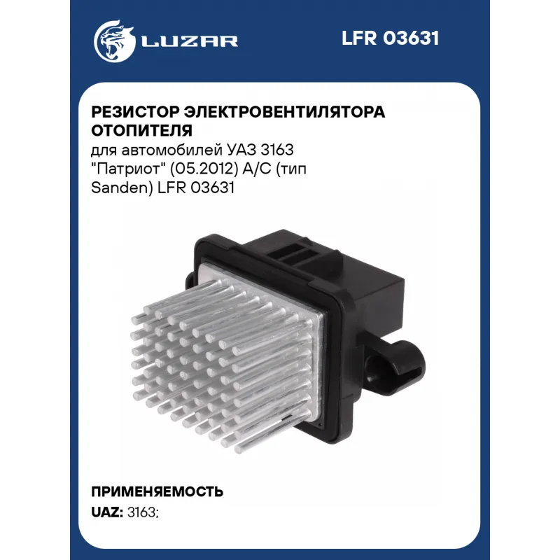 Резистор электровентилятора отопителя для автомобилей УАЗ 3163 "Патриот" (05.2012) A/C (тип Sanden) Характеристики: Артикул: LFR 03631 OEM номера: 29406031, 3163-00-8101092-30, 3163-8101092-30 Количество на автомобиль: 1 Напряжение,В: 12 Мощность, Вт: 30-60 Подходит для авто: УАЗ 3163 (Patriot) (05-) Для проверки применяемости отправьте VIN автомобиля через вкладку "Есть вопросы о товаре?" Комплектация: Резистор электровентилятора - 1 шт Гарантия: от 1 года.