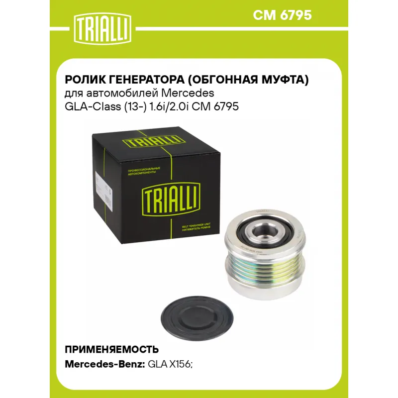 Ролик генератора (обгонная муфта) для автомобилей Mercedes GLA-Class (13-) 1.6i/2.0i Характеристики: Артикул: CM 6795 OEM номера: 000 906 00 22, 000 906 08 03, 000 906 19 03, 000 906 76 02 Гарантийный срок: 1 год/30 000 км. Количество на автомобиль: 1 Подходит для авто: Mercedes-Benz GLA X156 (13-) Для проверки применяемости отправьте VIN автомобиля через вкладку "Есть вопросы о товаре?" Комплектация: Ролик генератора (обгонная муфта) - 1 шт Гарантия: от 1 года.