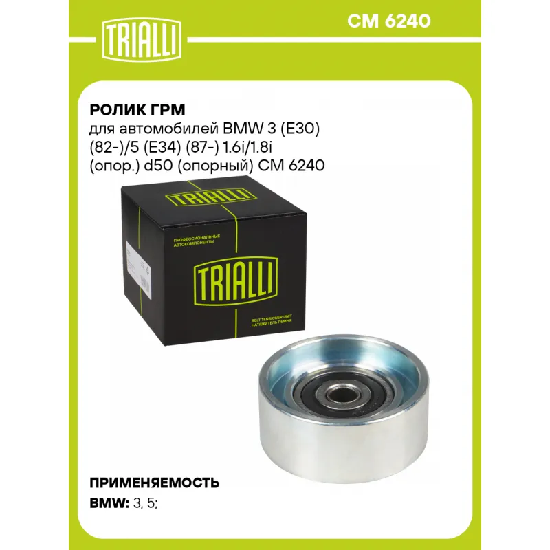 Ролик ГРМ для автомобилей BMW 3 (E30) (82-)/5 (E34) (87-) 1.6i/1.8i (опор.) d50 (опорный) Характеристики: Артикул: CM 6240 OEM номера: 11311721264, 11311727141 Ширина, мм: 21 Внешний диаметр, мм: 50 Внутренний диаметр, мм: 8.2 Гарантийный срок: 2 года/60 000 км. Сопутствующий товар: Ролики ГРМ: CM 5203, CM 6292 Количество на авт... Читать полностью →