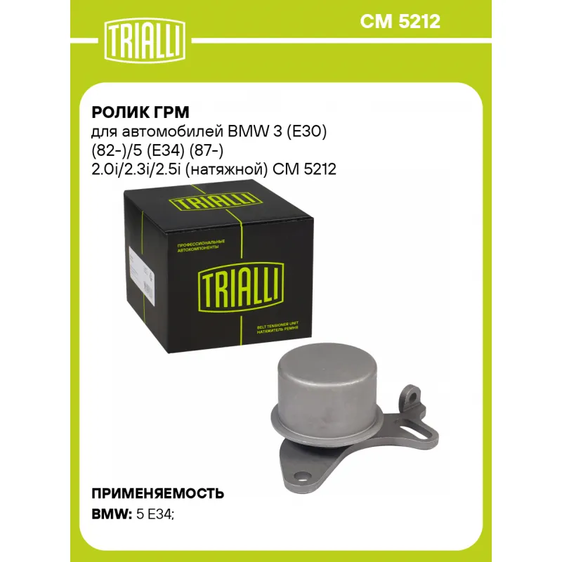 Ролик ГРМ для автомобилей BMW 3 (E30) (82-)/5 (E34) (87-) 2.0i/2.3i/2.5i (натяжной) Характеристики: Артикул: CM 5212 OEM номера: 11311711154, 11311711153, 11311272424 Количество на автомобиль: 1 Материал: пластмасса/металл (сталь) Внешний диаметр, мм: 49,5 Гарантийный срок: 2 года/60 000 км. Внутренний диаметр, мм: 8,2 Ширина, мм: 32 Тип ролика: натяжной Товарная линейка: BLACK Подходит для авто: BMW 5 E34 (88-) Для проверки применяемости отправьте VIN автомобиля через вкладку "Есть вопросы о товаре?" Комплектация: Ролик ГРМ - 1 шт Гарантия: от 1 года.