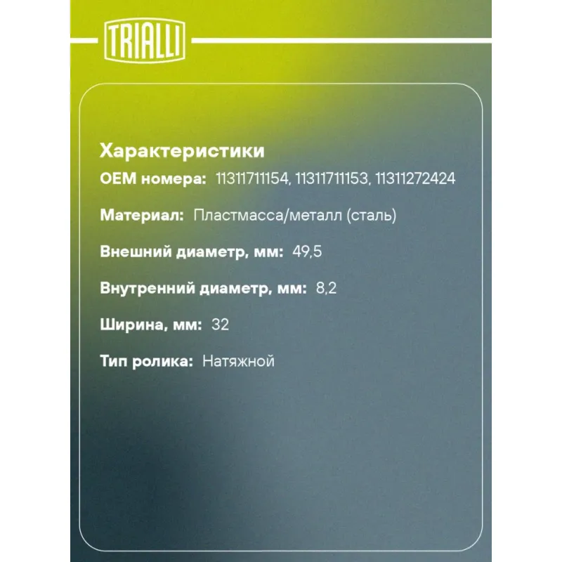 | Тип ролика | натяжной |