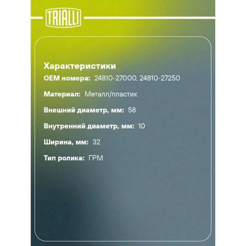 | Тип ролика | ГРМ |