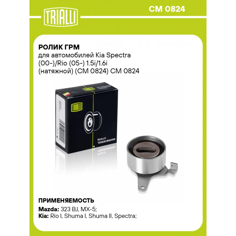 Ролик ГРМ для автомобилей Kia Spectra (00-)/Rio (05-) 1.5i/1.6i (натяжной) (CM 0824) Характеристики: Артикул: CM 0824 OEM номера: 0K937-12-700A, 244102X700, 244102X701 , B66012700A, B66012700B, B66012700C, B660-12-700D, B660-12-700E, B660-12-700F, 0K93812700, 9YJ6K254A, E9JY 6K254-A Количество на автомобиль: 1 Материал: металл Внешний диаметр, мм: 52 Гарантийный срок: 2 года/60 000 км. Ширина, мм: 25 Тип ролика: Механический Товарная линейка: BLACK Сопутствующие товары:: CM 0825 Подходит для авто: Mazda 323 BJ (98-), MX-5 (98-) Kia Rio I (00-), Shuma I (97-), Shuma II (01-), Spectra (00-), Carens II (06-), Sephia II (97-) Для проверки применяемости отправьте VIN автомобиля через вкладку "Есть вопросы о товаре?" Комплектация: Ролик ГРМ - 1 шт Гарантия: от 1 года.