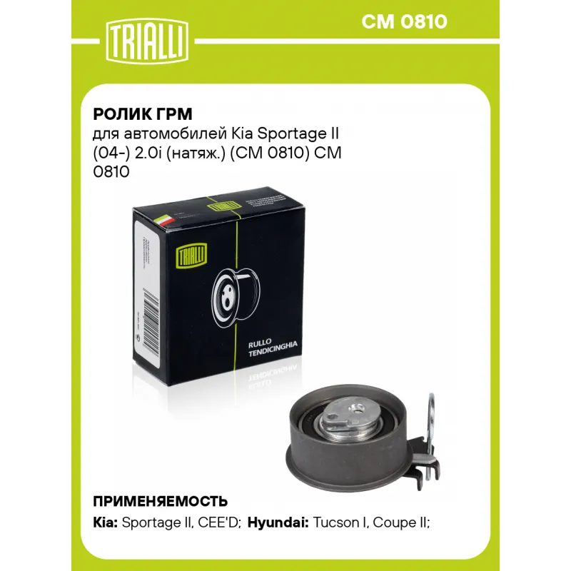 Ролик ГРМ для автомобилей Kia Sportage II (04-) 2.0i (натяж.) (CM 0810) Характеристики: Артикул: CM 0810 OEM номера: 24410-23050, 2441023050 Количество на автомобиль: 1 Материал: металл Внешний диаметр, мм: 70 Гарантийный срок: 2 года/60 000 км. Внутренний диаметр, мм: 8 Ширина, мм: 31 Тип ролика: механический Товарная линейка: BLACK Подходит для авто: Kia Sportage II (04-), CEE'D (07-) Hyundai Tucson I (04-), Coupe II (01-), Elantra III (00-) Для проверки применяемости отправьте VIN автомобиля через вкладку "Есть вопросы о товаре?" Комплектация: Ролик ГРМ - 1 шт Гарантия: от 1 года.