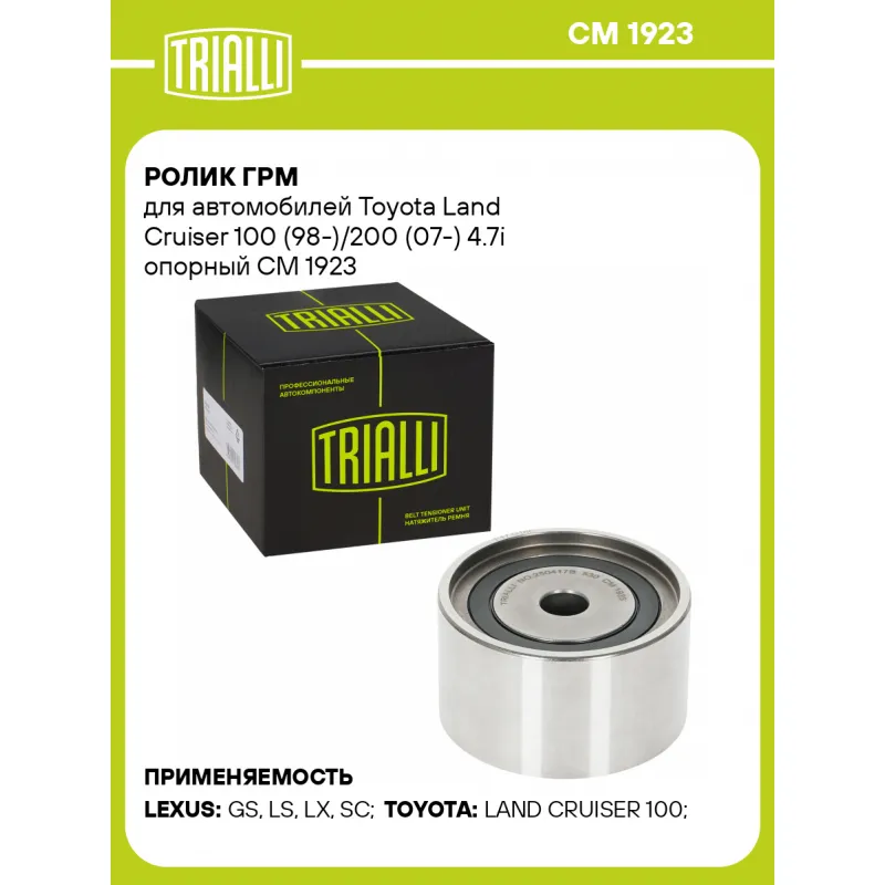 Ролик ГРМ для автомобилей Toyota Land Cruiser 100 (98-)/200 (07-) 4.7i опорный Характеристики: Артикул: CM 1923 OEM номера: 135030F010, 1350350011, 1350350010 Ширина, мм: 37.5 Внешний диаметр, мм: 66 Внутренний диаметр, мм: 12.2 Гарантийный срок: 2 года/60 000 км. Сопутствующий товар: Ролики ГРМ: CM 1916 Товарная линейка: BLACK ... Читать полностью →