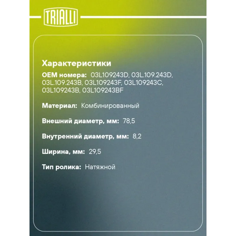 | Тип ролика | натяжной |
