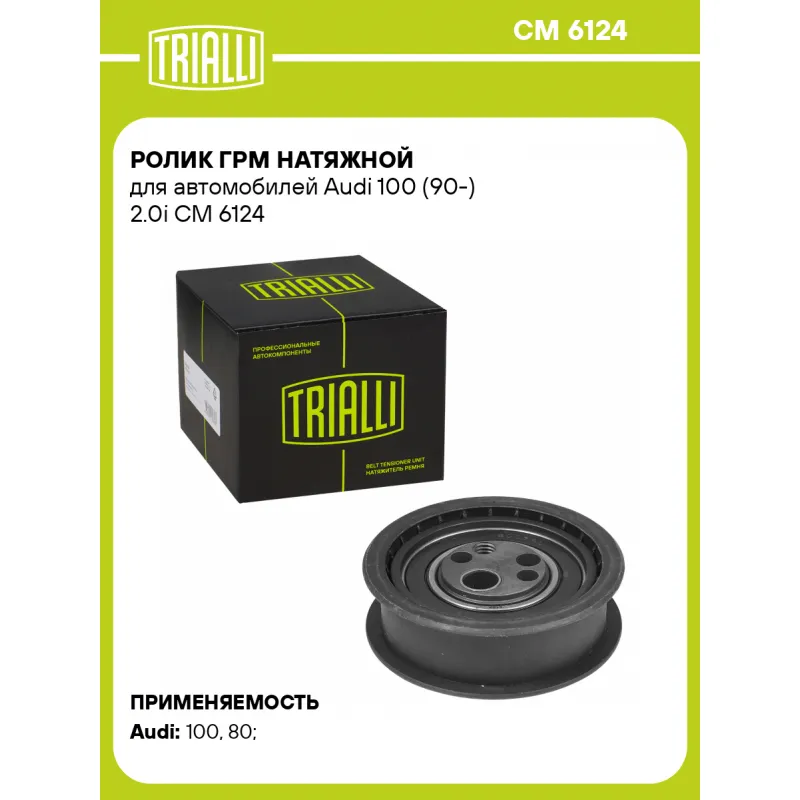 Ролик ГРМ натяжной для автомобилей Audi 100 (90-) 2.0i Характеристики: Артикул: CM 6124 OEM номера: 048109243A, 048 109 243 A Гарантийный срок: 2 года/60 000 км. Количество на автомобиль: 1 Материал: Металл Внешний диаметр, мм: 71,5 Ширина, мм: 20 Товарная линейка: BLACK Подходит для авто: Audi 100 (90-), 80 (91-) Для проверки применяемости отправьте VIN автомобиля через вкладку "Есть вопросы о товаре?" Комплектация: Ролик ГРМ - 1 шт Гарантия: от 1 года.