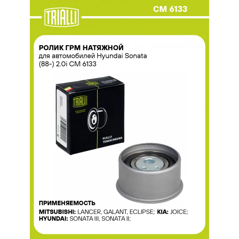 Ролик ГРМ натяжной для автомобилей Hyundai Sonata (88-) 2.0i Характеристики: Артикул: CM 6133 OEM номера: 2445033010, 2445033020, MD129355 Гарантийный срок: 2 года/60 000 км. Сопутствующий товар: Ролики ГРМ: CM 6147, CM 0809 Количество на автомобиль: 1 Материал: Металл Внешний диаметр, мм: 60 Внутренний диаметр, мм: 10,2 Ширина, мм: 33,5 Товарная линейка: BLACK Комплектация: Ролик ГРМ - 1 шт Гарантия: от 1 года.