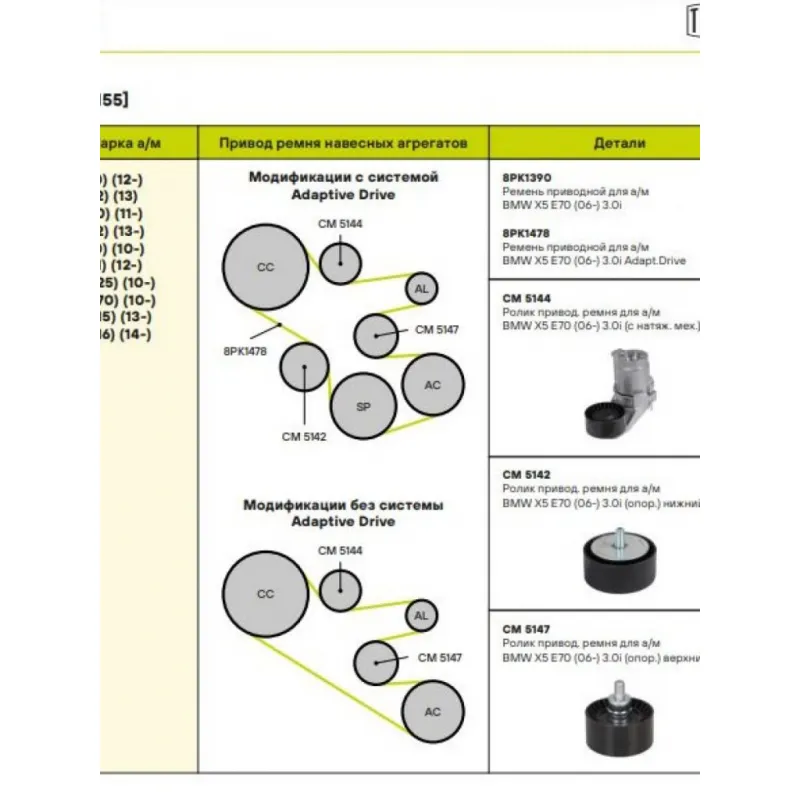 | Сопутствующий товар: Ролики приводного ремня | CM 5144, CM 5147 |