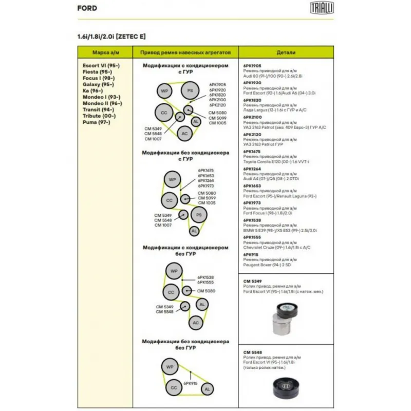 | Сопутствующий товар: Ролики приводного ремня | CM 5348 |