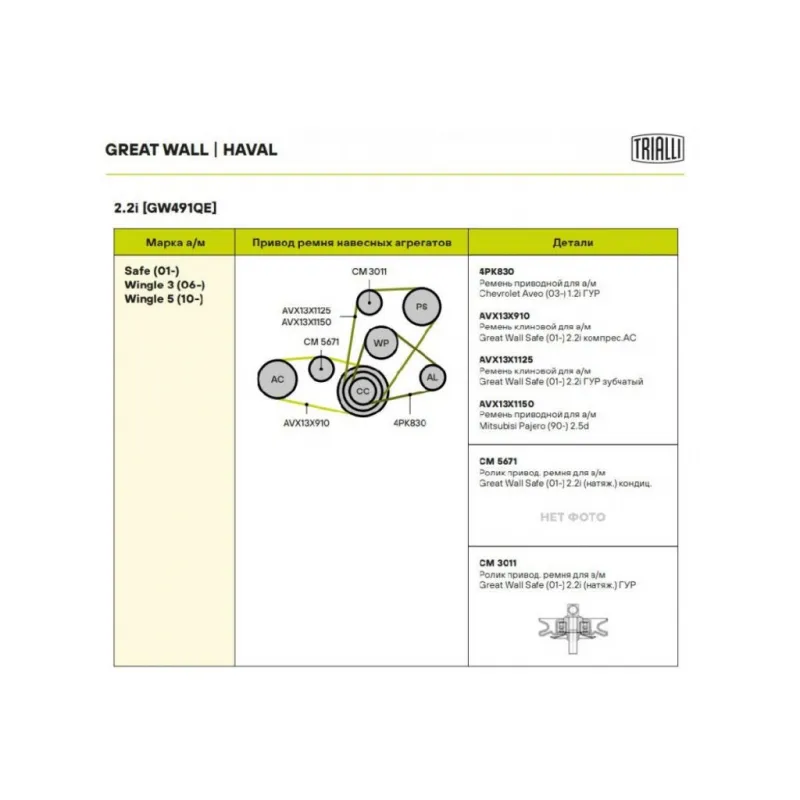 | Сопутствующий товар: Ремни | 4PK830, AVX13X910, AVX13X1125, AVX13X1150 |