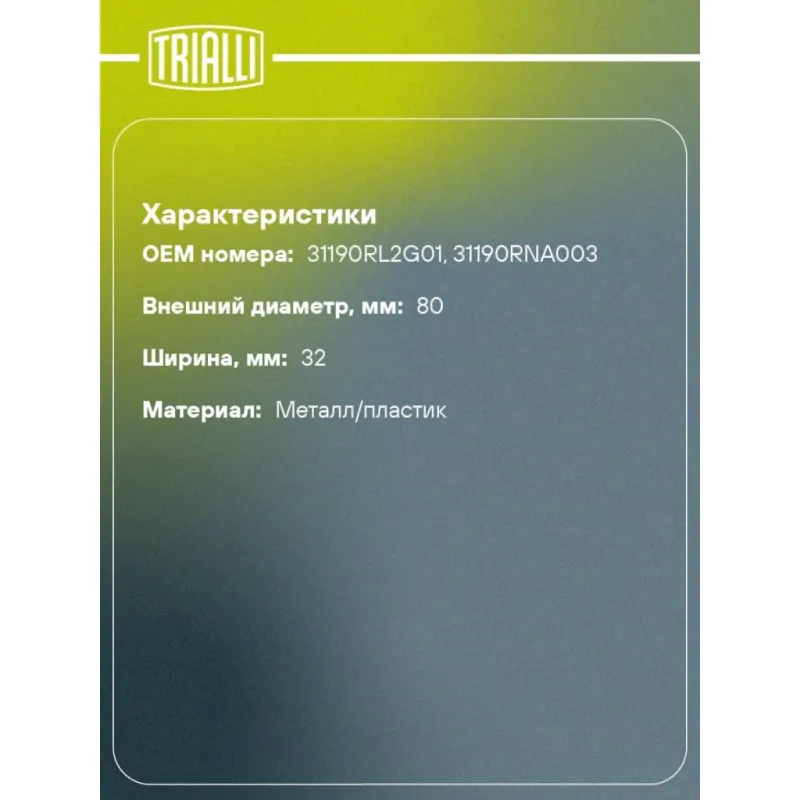 Ролик приводного ремня для автомобилей Honda Civic (06-)/Accord (08-) 1.8i/2.0i [R18; R20] (опорный) (CM 2302) Характеристики: Артикул: CM 2302 OEM номера: 31190RL2G01, 31190RNA003 Материал: металл/пластик Сопутствующий товар: Ролики приводного ремня: CM 2305 Количество на автомобиль: 1 Внешний диаметр, мм: 80 Особенности конструкции:: приводной Внутренний диаметр, мм: 17 Ширина, мм: 32 Гарантийный срок: 2 года/60 000 км. Сопутствующий товар: Ремни: 7PK2061 Товарная линейка: BLACK Подходит для авто: Honda Accord (08-), Civic IX (11-) Для проверки применяемости отправьте VIN автомобиля через вкладку "Есть вопросы о товаре?" Комплектация: Ролик приводного ремня - 1 шт Гарантия: от 1 года.
