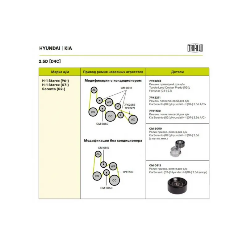 | Сопутствующий товар: Ремни | 7PK2283, 7PK2271, 7PK1730 |