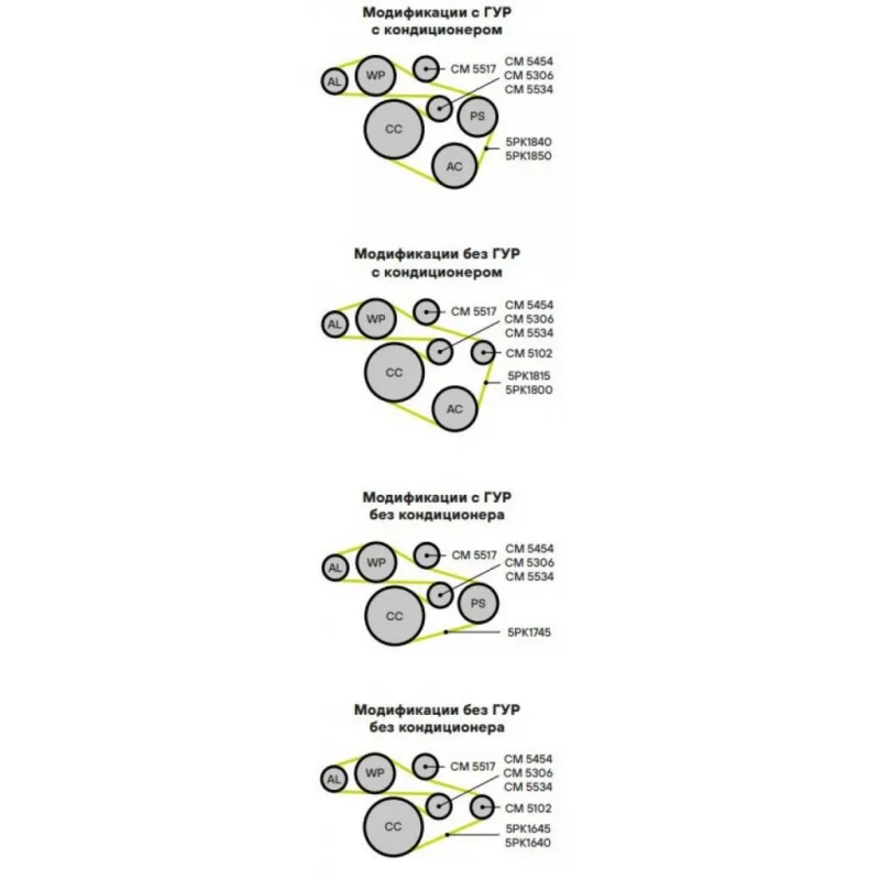| Сопутствующий товар: Ролики приводного ремня | CM 5454, CM 5534, CM 5102, CM 5517 |