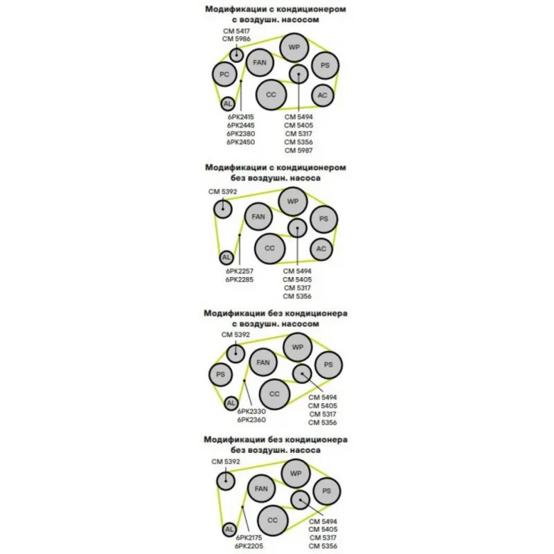 | Сопутствующие товары: | CM 5405, CM 5405, CM 5317, CM 5986, CM 5417, CM 5987, CM 5392, 6PK2415, 6PK2445, 6PK2380, 8PK2450, 6PK2257, 6PK2285, 6PK2330, 6PK2360, 6PK2175, 6PK2205 |
