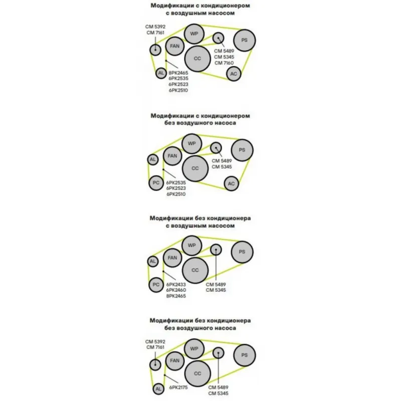 | Сопутствующие товары: | CM 5345, CM 5489, CM 7160, 6PK2535, 6PK2523, 6PK2510, 8PK2465, 6PK2433, 6PK24560, 6PK2175 |
