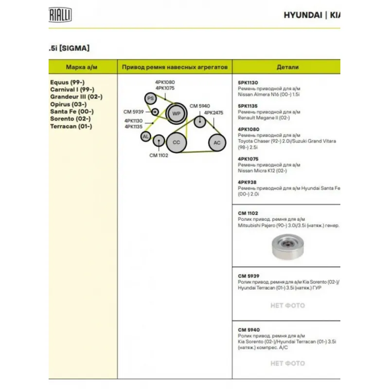 | Сопутствующий товар: Ремни | 5PK1130, 5PK1135, 4PK1080, 4PK1075, 4PK938 |