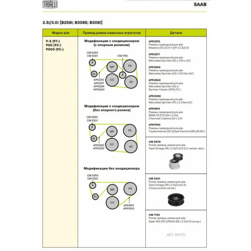 | Сопутствующий товар: Ролики приводного ремня | CM 5301 |