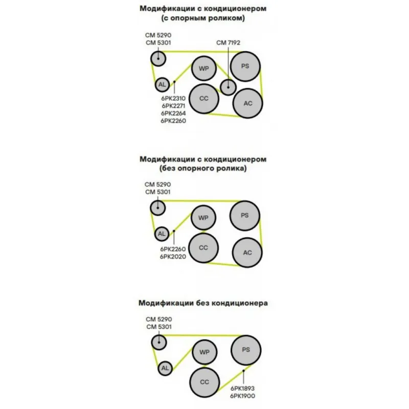 | Сопутствующий товар: Ролики приводного ремня | CM 5290 |