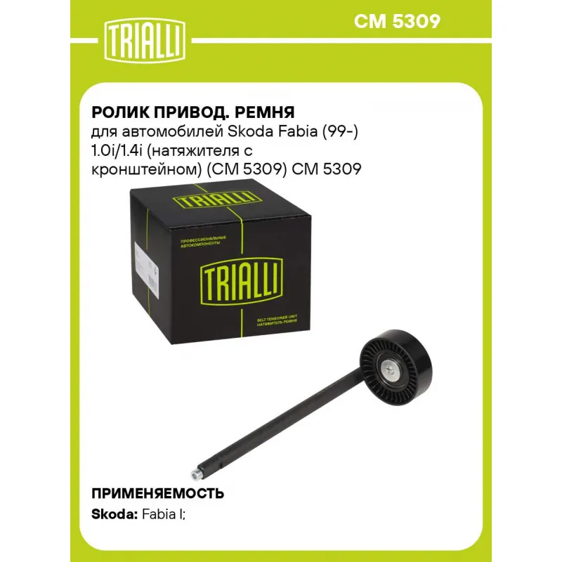 Ролик привод. ремня для автомобилей Skoda Fabia (99-) 1.0i/1.4i (натяжителя с кронштейном) (CM 5309) Характеристики: Артикул: CM 5309 OEM номера: 047 903 306 C, 047 903 306C Сопутствующие товары:: 6PK1750, 5PK1219, CM 5535, CM 5468 Сопутствующий товар: Ролики приводного ремня: CM 5535, CM 5468 Количество на автомобиль: 1 Внешний диаметр, мм: 70 Ширина, мм: 24 Гарантийный срок: 2 года/60 000 км. Материал: Комбинированный Сопутствующий товар: Ремни: 6PK1750, 5PK1219 Товарная линейка: BLACK Подходит для авто: Skoda Fabia I (99-) Для проверки применяемости отправьте VIN автомобиля через вкладку "Есть вопросы о товаре?" Комплектация: Ролик приводного ремня с кронштейном - 1 шт Гарантия: от 1 года.