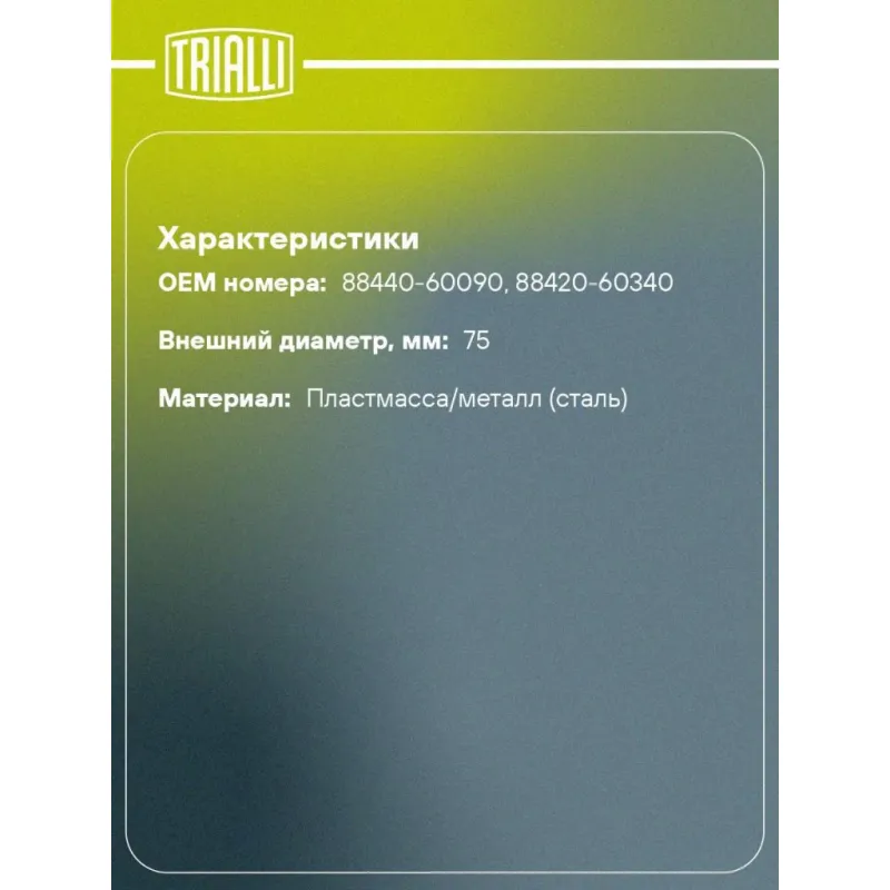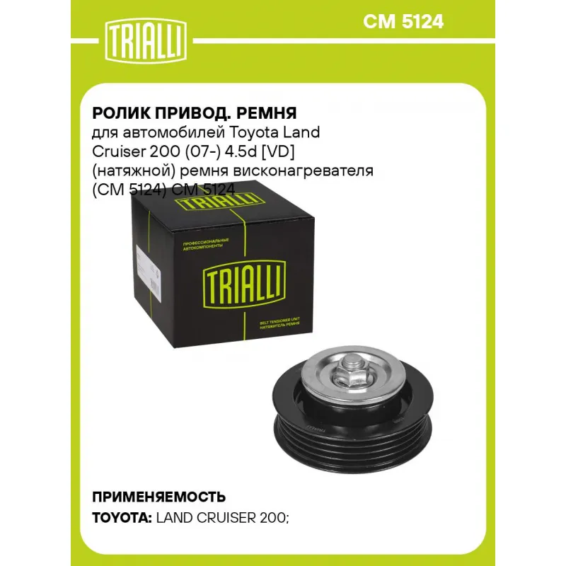 Ролик привод. ремня для автомобилей Toyota Land Cruiser 200 (07-) 4.5d [VD] (натяжной) ремня висконагревателя (CM 5124) Характеристики: Артикул: CM 5124 OEM номера: 88440-60090, 88420-60340 Количество на автомобиль: 1 Внешний диаметр, мм: 75 Внутренний диаметр, мм: 29,5 Гарантийный срок: 2 года/60 000 км. Материал: пластмасса/ме... Читать полностью →