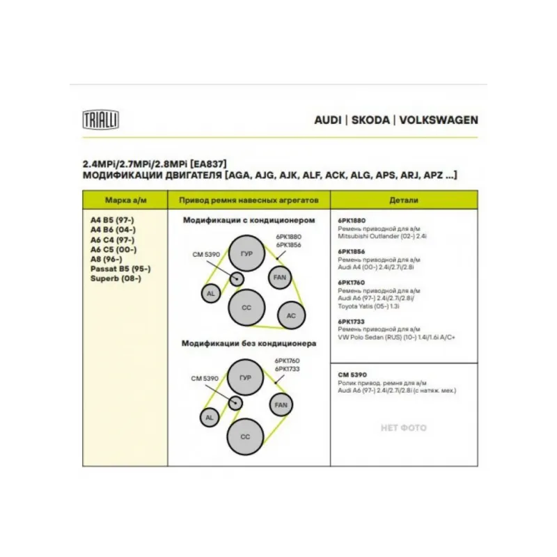 | Сопутствующий товар: Ремни | 6PK1880, 6PK1856, 6PK1760, 6PK1733 |
