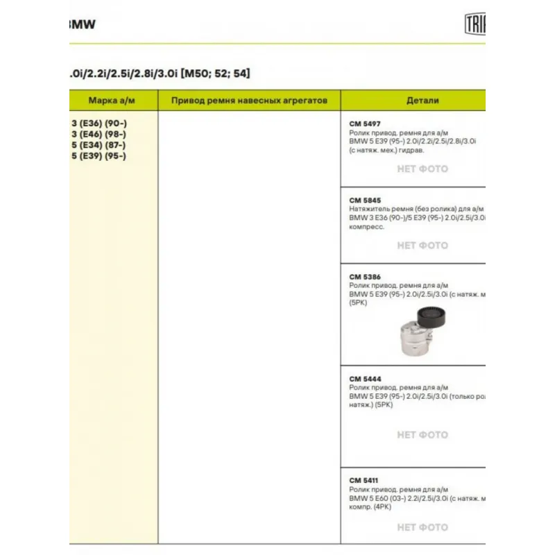 | Сопутствующий товар: Ролики приводного ремня | CM 5497, CM 5845, CM 5444, CM 5411 |