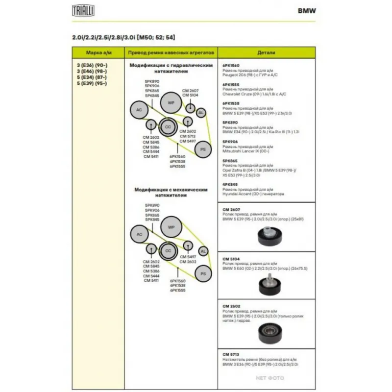 | Сопутствующий товар: Ролики приводного ремня | CM 5104, CM 2602, CM 5713 |