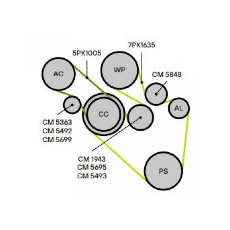 7PK1635, 5PK1005, CM 5493, CM 1943, CM 5848, CM 5363, CM 5492, CM 5699