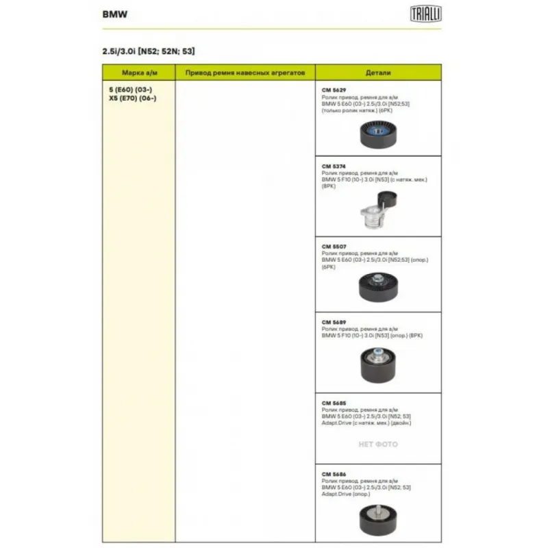 | Сопутствующий товар: Ролики приводного ремня | CM 5374, CM 5507, CM 5689, CM 5685, CM 5686 |