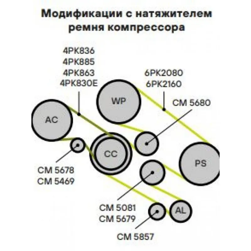 | Сопутствующий товар: Ролики приводного ремня | CM 5081, CM 5679, CM 5680, CM 5857, CM 5469 |