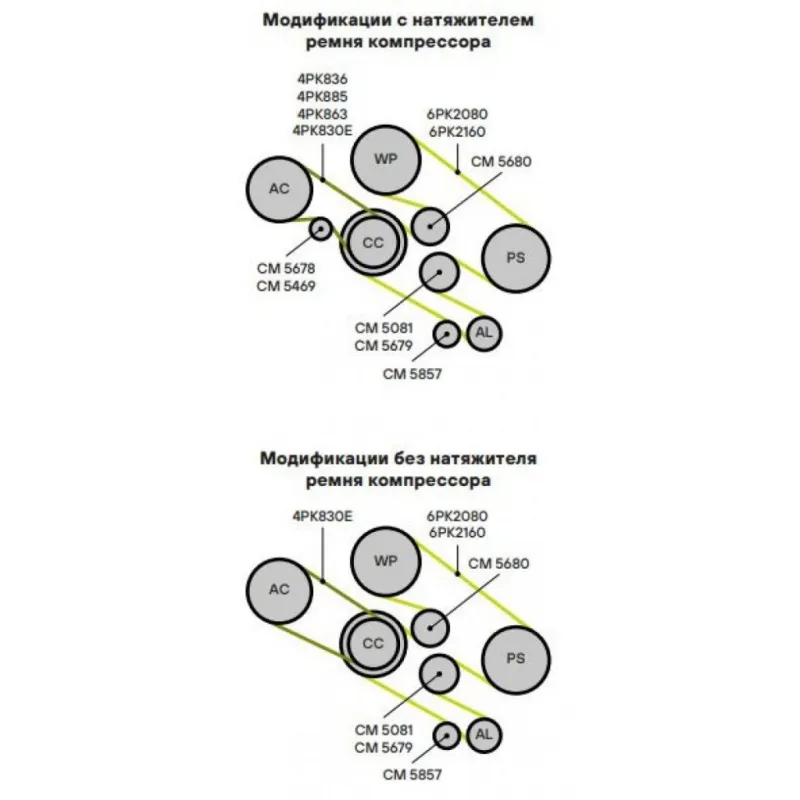 | Сопутствующие товары: | 6PK2080, 6PK2160, 4PK836, 4PK885, 4PK863, 4PK830E, CM 5081, CM 5679, CM 5857, CM 5678, CM 5469 |