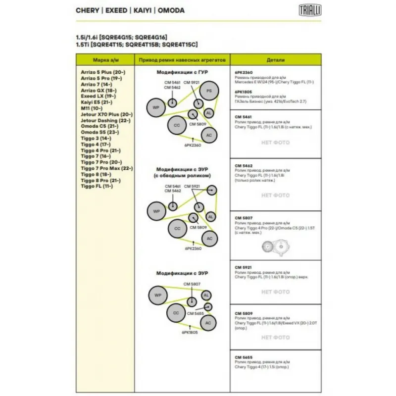 | Сопутствующий товар: Ремни | 6PK2360, 6PK1805 |