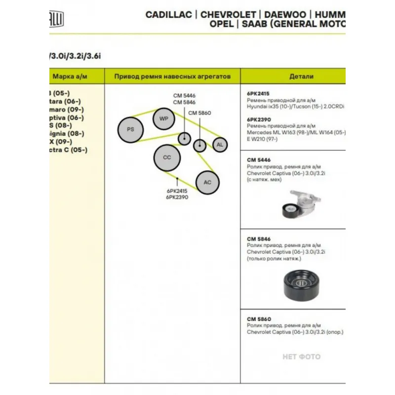 | Сопутствующий товар: Ролики приводного ремня | CM 5846, CM 5860 |