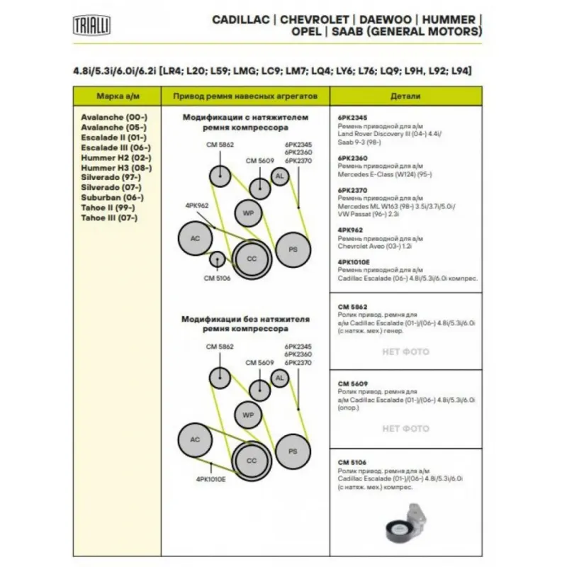| Сопутствующий товар: Ролики приводного ремня | CM 5862, CM 5609 |