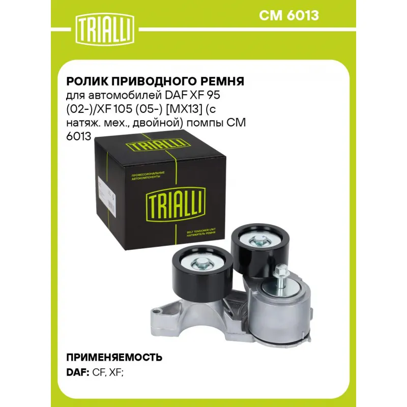 Ролик приводного ремня для автомобилей DAF XF 95 (02-)/XF 105 (05-) [MX13] (с натяж. мех., двойной) помпы Характеристики: Артикул: CM 6013 OEM номера: 1878665, 1809098, 1942517, 1918441, 1690115, 1687820, 1653584 Ширина, мм: 40 Внешний диаметр, мм: 75 Внутренний диаметр, мм: 8,4 Гарантийный срок: 2 года/60 000 км. Количество на ... Читать полностью →