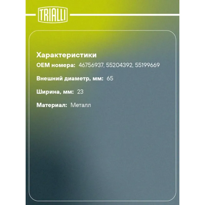 | Внешний диаметр, мм | 65 |
