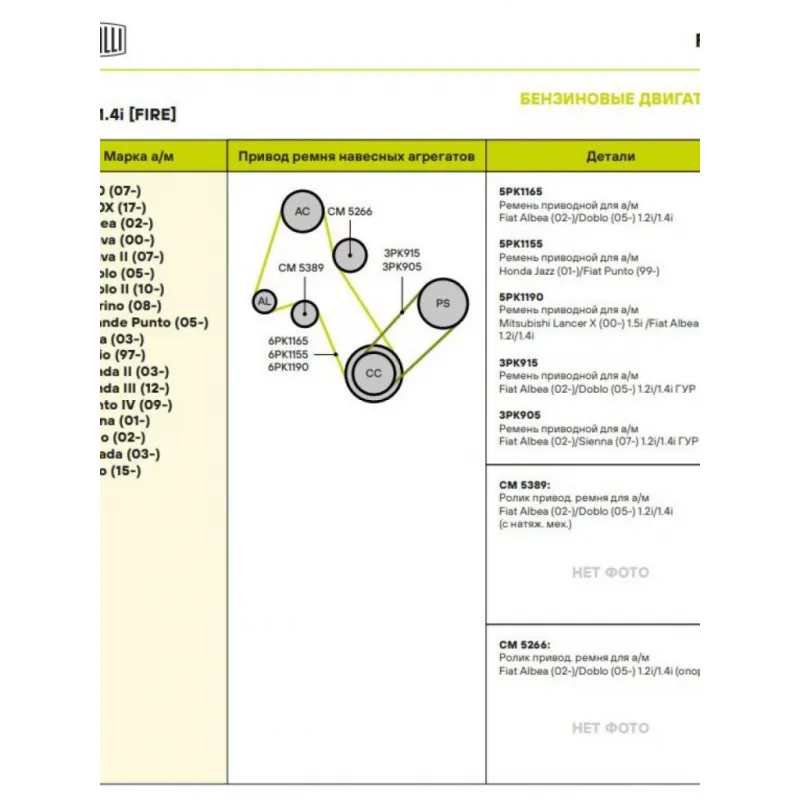 | Сопутствующий товар: Ремни | 5PK1165, 5PK1155, 5PK1190, 3PK915, 3PK905 |