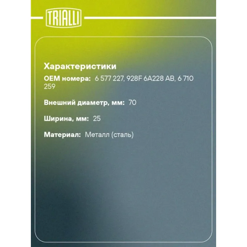 | Внешний диаметр, мм | 70 |
